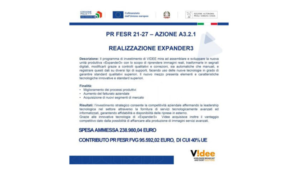 Videa diventa Videe S.p.A.; entra Friulia S.p.A. nella compagine societaria.